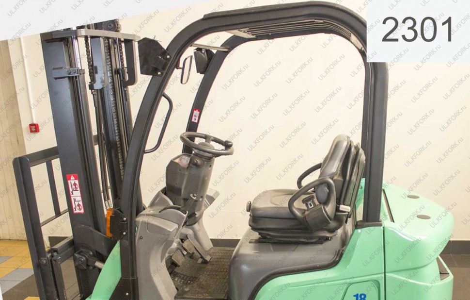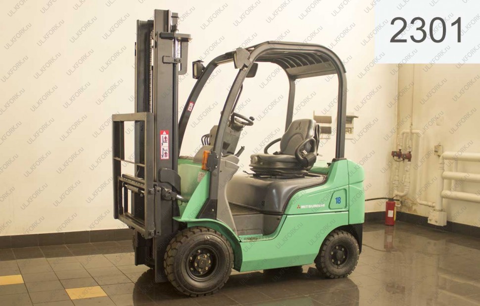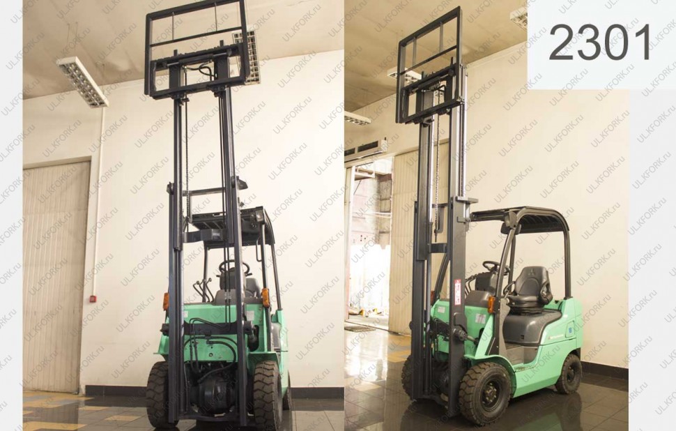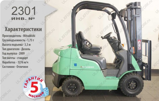 Дизельный автопогрузчик Mitsubishi Б/У с интентарным номером 2301 2009 года выпуска. Состояние - Отличное. Имеет грузоподъемность 1750 кг. Гарантия: 6 мес или 800 м/час.