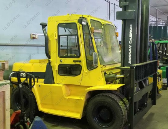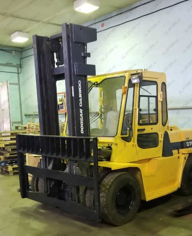 Дизельный автопогрузчик Doosan модели D70S-2 CAB б/у с инвентарным номером K00124 2007 года выпуска. Состояние - хорошее. Имеет грузоподъемность 7000 кг. Гарантия: 3 месяца или 500 м/час.
