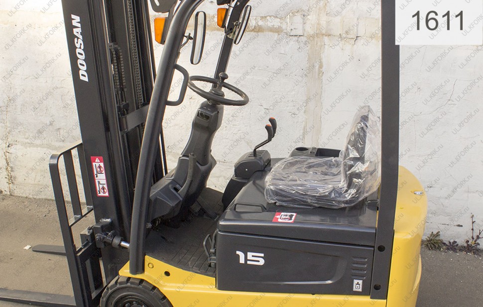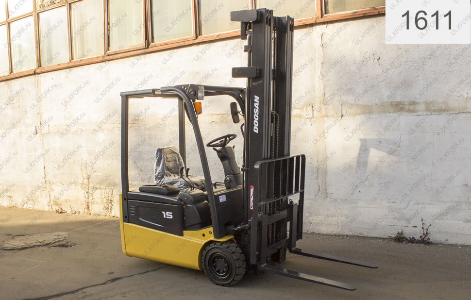 Электрический погрузчик Doosan Б/У с интентарным номером 1611 2006 года выпуска. Состояние - Хорошее. Имеет грузоподъемность 1500 кг. Гарантия: .